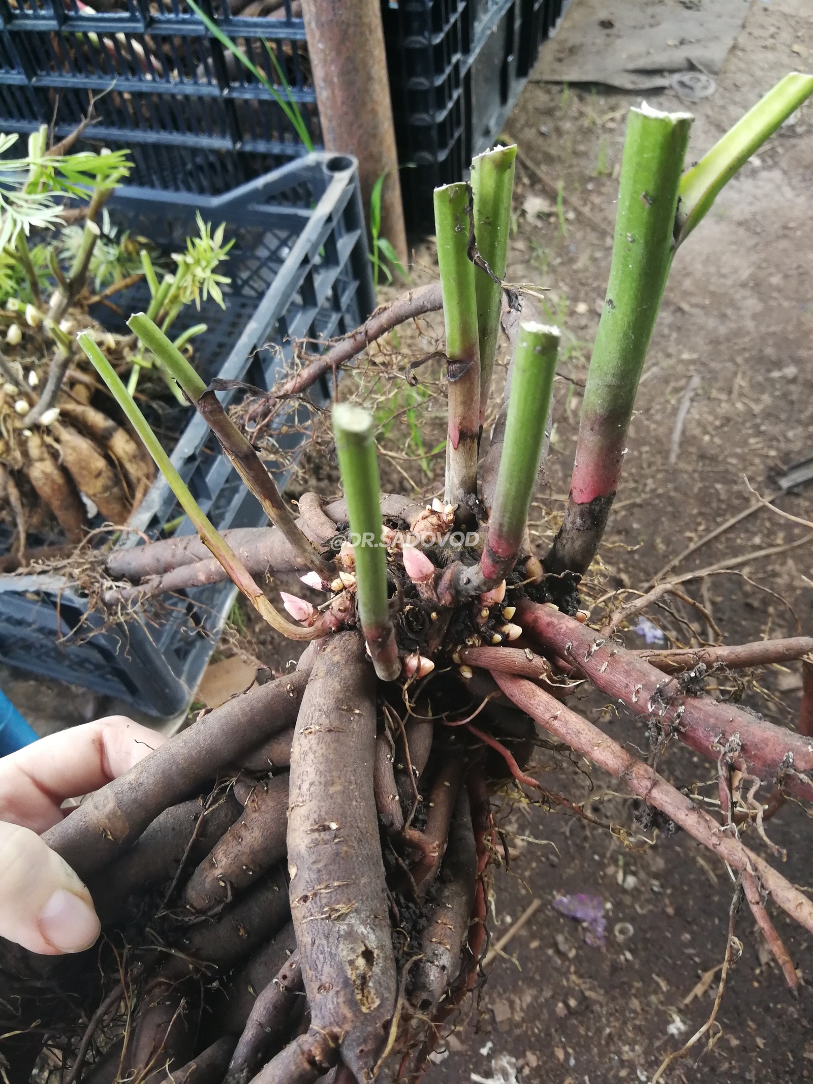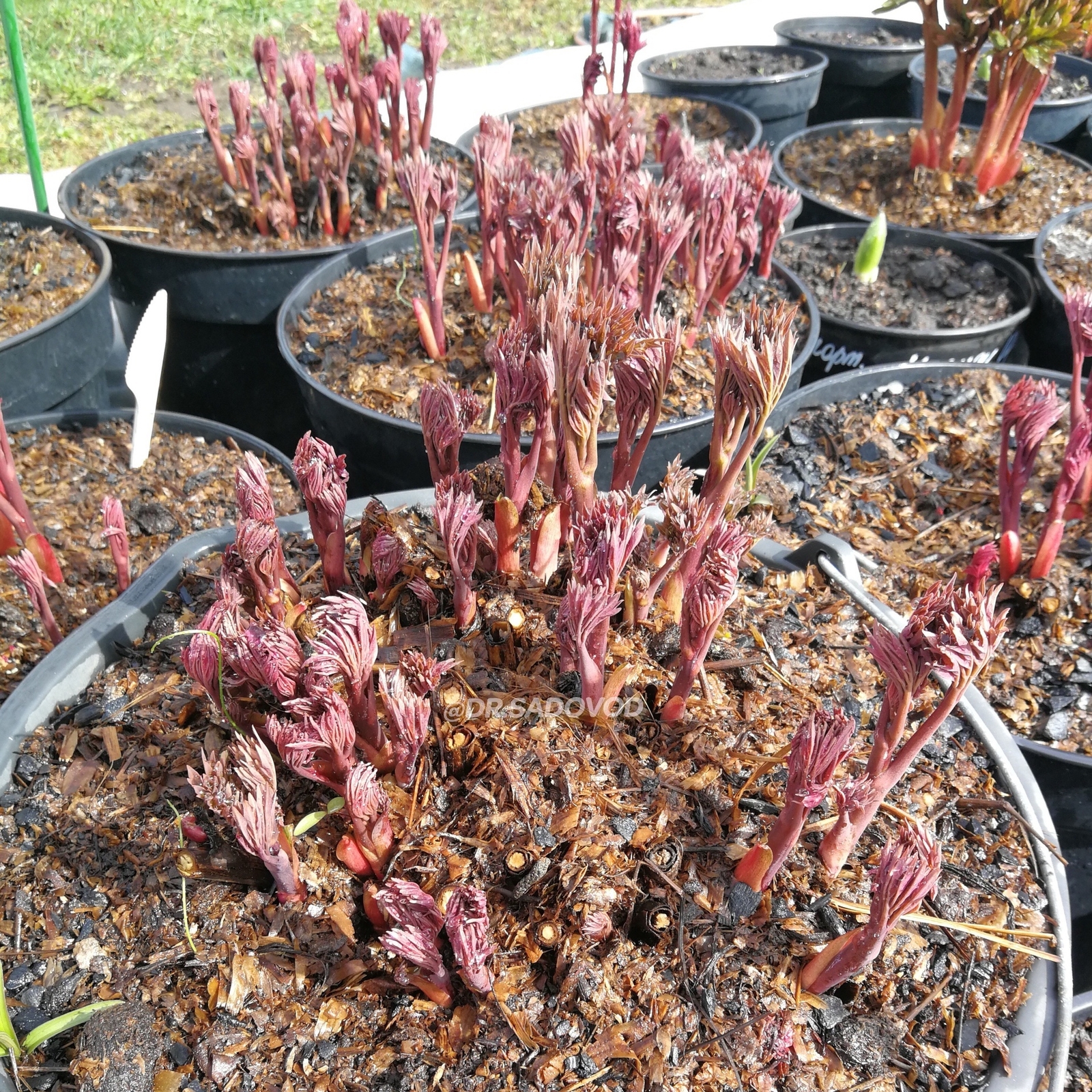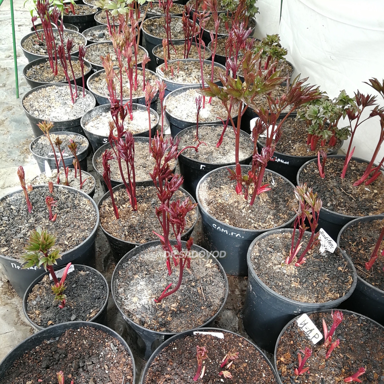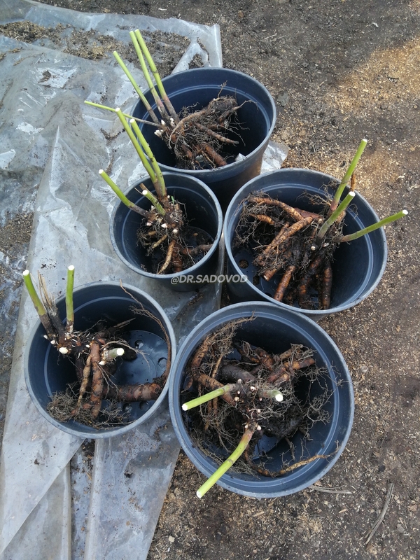 ПОСЛЕ ДЕЛЕНИЯ ВСЕ КОРНИ САЖАЕМ В ГОРШКИ РАЗНОГО ЛИТРАЖА, В ЗАВИСИМОСТИ ОТ РАЗМЕРА КОРНЯ. ВО-ПЕРВЫХ, ПОСАДКА В ГОРШКИ ПОМОГАЕТ ИЗБЕЖАТЬ ПЕРЕСЫХАНИЯ КОРНЕЙ, ВО-ВТОРЫХ, РАСТЕНИЕ ПРОДОЛЖАЕТ РАСТИ И РАЗВИВАТЬСЯ И, В-ТРЕТЬИХ, ПРИ ПРОДАЖЕ ПИОНОВ НЕТ ПЕРЕСОРТА И ПУТАННИЦЫ В СОРТАХ.